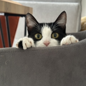 Je suis NANOU. Chatte errante avec mes bébés qui a été prise sous l’aile de ma tatie.