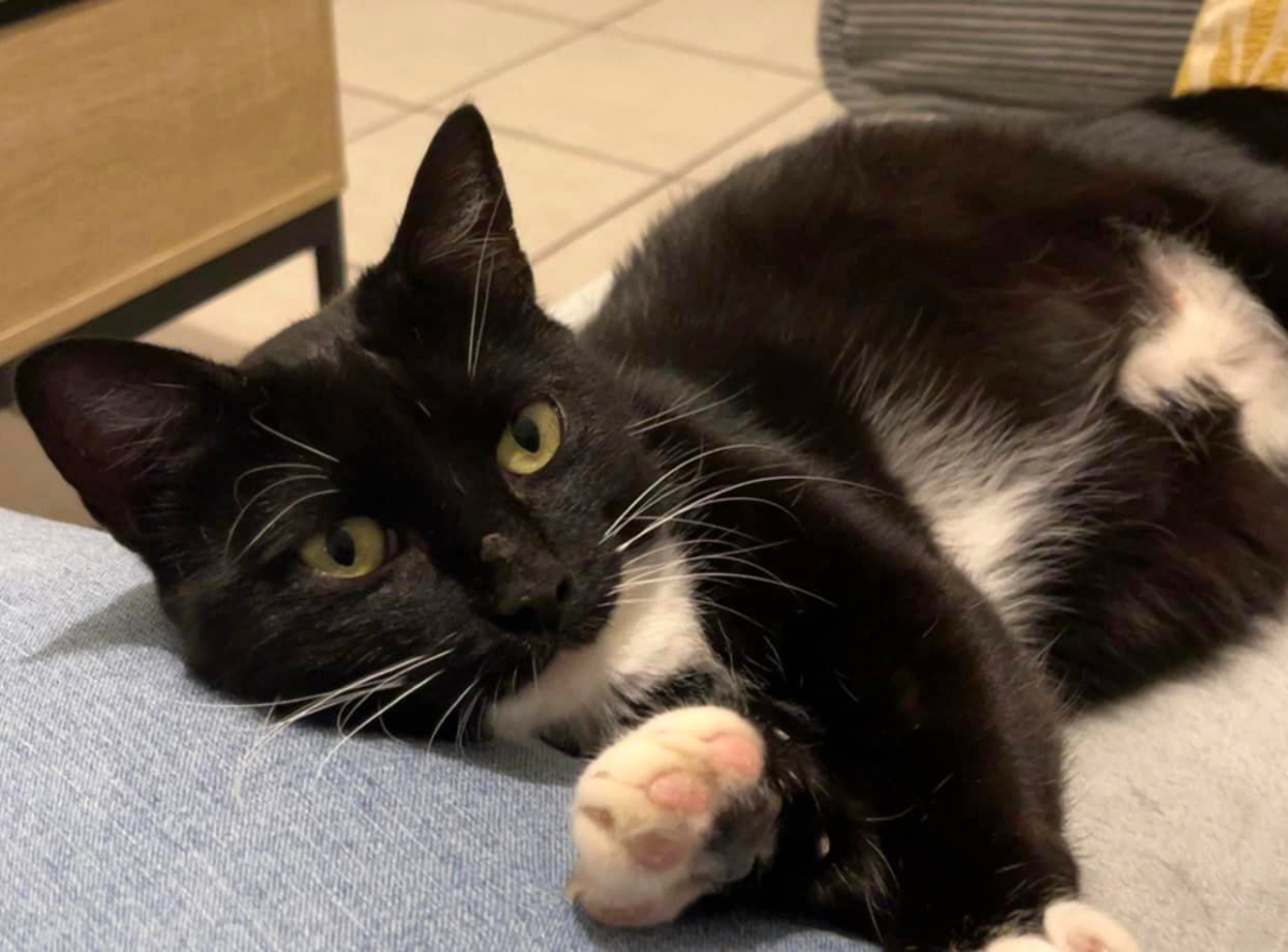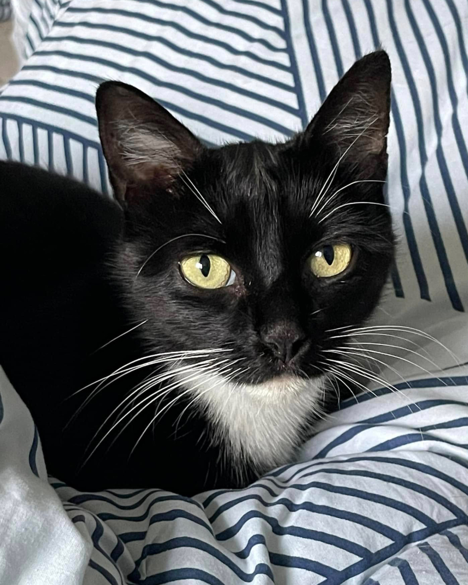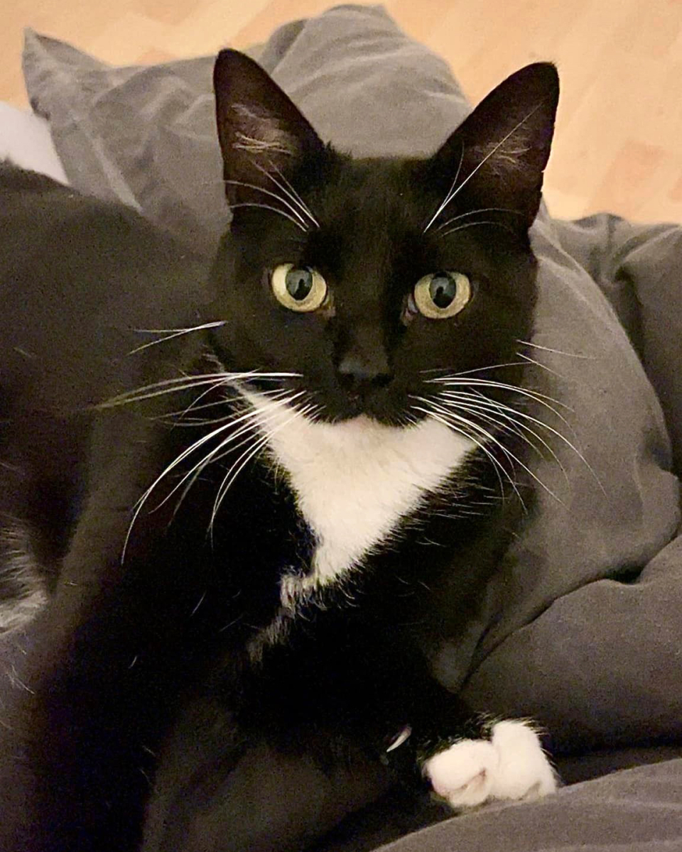 Moi c’est Orea, je suis une jolie minette en smoking noir avec 4 chaussettes blanches.