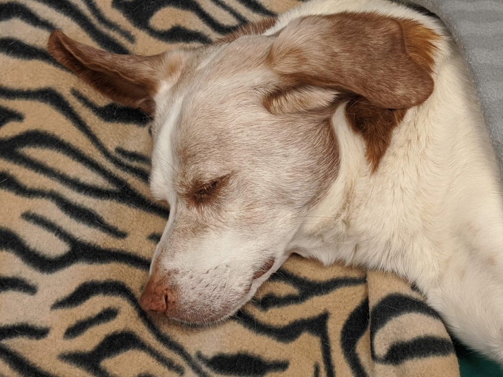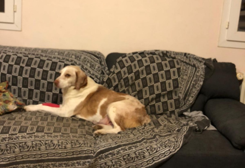 Endormi, César est prêt à passer au bloc opératoire. La masse qu'il a au bas-ventre a été retirée et sera analysée pour savoir si elle est cancéreuse ou pas. Photo DREn attendant, César a regagné le refuge et il est en convalescence. Il semble bien récupérer de cette lourde opération. Afin de pouvoir le surveiller à chaque instant, et de lui donner des conditions de rétablissement très favorables, il a emménagé chez Fanette, la responsable du refuge. Il mange bien, se promène dans le jardin et a déjà même commencé à courir après les souris ! Il profite de la chaleur de foyer de Fanette et du confort des canapés comme les photos en témoignent.