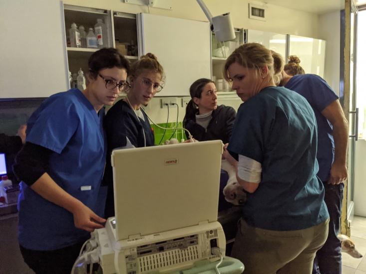 Toute l'équipe soignante se penche sur le cas de César. Photo DRAujourd’hui, alors qu’il est devenu un papy, il est plus qu’urgent de répondre à sa demande. Surtout depuis les derniers événements survenus dans sa vie. En effet, il y a quelques jours, ses soigneurs ont observé une grosseur anormale au bas-ventre. Aussitôt, César a été transporté du refuge, situé en Seine-Maritime, à Neuilly-sur-Seine, pour être examiné par Thierry Bedossa, le vétérinaire d’Ava, et surtout son président-fondateur. Le bilan de santé complet ainsi qu’une radio ont laissé d’abord supposer la présence d’une tumeur à la rate, et amené le praticien à faire opérer César pour lui donner une chance de survivre. Puis, l’échographie et la chirurgie qui l’a suivie ont révélé que l'énorme masse était le résultat d’une torsion hépatique ou d’un abcès du lobe du foie. Elle a alors été retirée et sera analysée dans les jours qui viennent afin de vérifier si la tumeur est cancéreuse ou pas.
