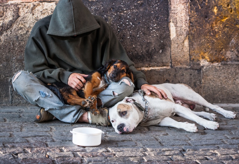 Si les SDF sont nombreux à posséder des chiens, peu d'associations se préoccupent de les aider à nourrir ou soigner leur animal de compagnie. Comme ce sont souvent les refuges qui collectent et offrent les croquettes, le confinement rend la tâche plus difficile.