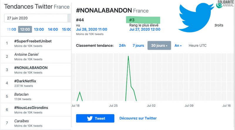 Côté Twitter, la mobilisation contre l'abandon ce 27 juin a porté la cause dans le top des tendances en France. Toutes les catégories de la population ont relayé le message.