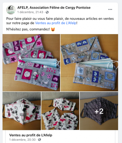 Pour faire face, l’AFELP, à l’instar de nombre d’associations, a donc eu recours cette année à la vente en ligne. Il ne s’agit pas d’une totale nouveauté mais d’une initiative qui a pris de l’ampleur au vu du contexte sanitaire : « L’AFELP dispose depuis plusieurs années d’une page Facebook dédiée à de la vente en ligne au profit de l’association. Très utilisée au début, son usage s’est essoufflé au fil du temps. Mais cette année, il est apparu évident que nous devions réactiver cette page pour remplacer nos ventes physiques annulées. » Ainsi, plusieurs objets comme des masques, des lingettes lavables en éponge, des pochettes ou des pochons de lavande ont été commandés et payés en ligne, et remis en main propre ou envoyé par colis avec une contribution des acheteurs aux frais de port.
