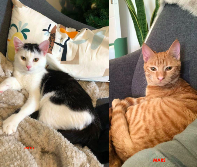 Cela signifie que les deux jeunes chats jouent ensemble, font leur toilette mutuellement ou bien sont toujours dans la même pièce. Mais au-delà de cette complicité manifeste, Mars et Jekyll comptent l’un sur l’autre pour s’adapter aux nombreux changements déjà survenus dans leur courte vie : « Si les deux sont timides, Jekyll est plus sociale, il va plus facilement vers les personnes qu’il ne connaît pas et s’adapte plus rapidement à un nouvel environnement, détaille Marie Gilles. Mars a alors tendance à calquer son comportement sur celui de son frère. En fait, ils se rassurent mutuellement. »