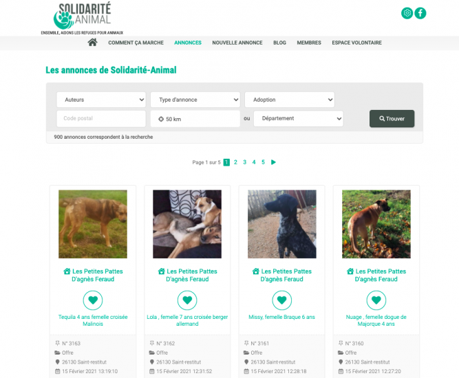 Pour retrouver toutes les annonces d'adoption, rendez-vous sur la page "Annonces", rubrique "Adoption"