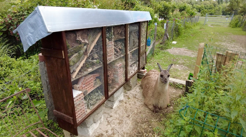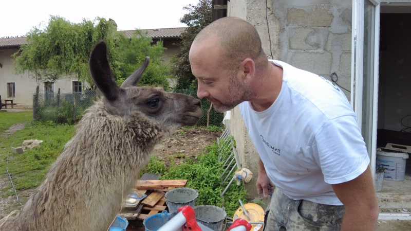 Patchou le lama suit attentivement l'avancée des travaux. ©La Petite BohèmeQuelques autres bénévoles du chantier sont également retournés à La Petite Bohème, pour revoir les équipes de l’association et bien sûr les animaux. « Des liens très forts et des amitiés se sont créés » témoigne Roxanne, qui a particulièrement été touchée par l’évolution de certains bénévoles, « introvertis à leur arrivée, et plus épanouis à leur départ. »