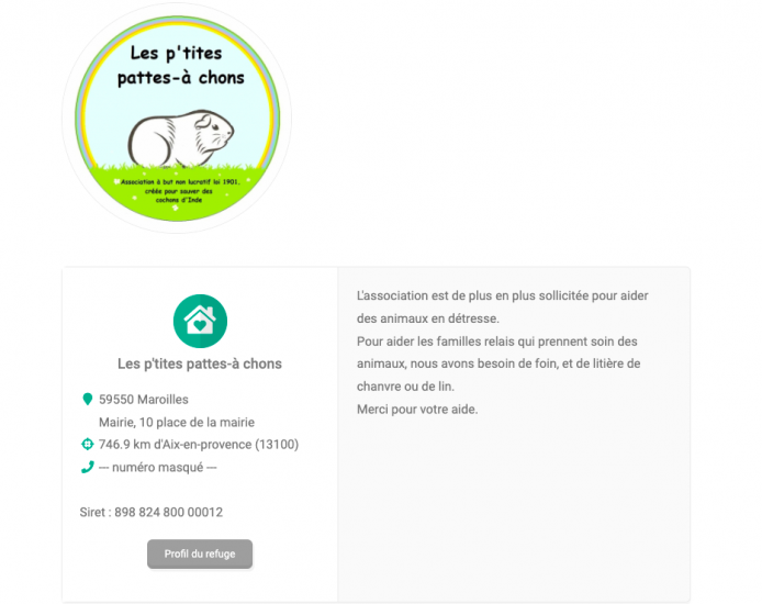 Enfin les familles d’accueil sont toujours recherchées. Les P’tites pattes-à Chons, qui ne fonctionne qu’avec des familles d’accueil, recherche des bénévoles à Maroilles, Valenciennes et Lille. « Les frais vétérinaires sont pris en charge par l’association, et on fournit si besoin le matériel et le foin. Mais on ne peut pas fournir de la nourriture fraiche tous les jours » précise Florence Dusséaux. Quant à l’association les Foli’chons, la présidente indique avoir toujours besoin de familles d’accueil prêtes à aider en cas de manque de place au refuge. Pour les deux associations, il est en outre important que les personnes qui se proposent connaissent les besoins des cochons d’Inde, « même si on est là pour les accompagner et expliquer ce qu’il faut » souligne Marine Sagne. « Il faut avoir conscience de ce que cet engagement représente » conclut Florence Dusséaux.