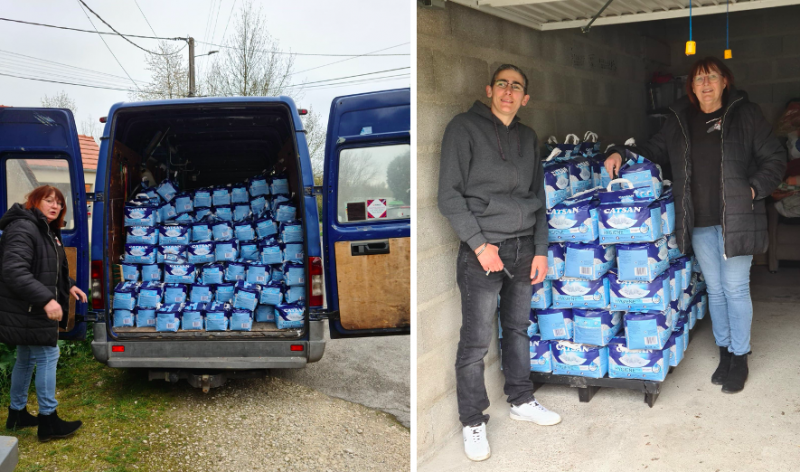 « Nous avons reçu un très bon accueil à l’entrepôt de Mars Petcare, souligne Magali Huyghues des Étages, fondatrice de l’association Boules de Poils basée dans la Nièvre (58), qui a pu récupérer 5 palettes de litière. Pour le transport et le chargement, j’ai demandé l’aide d’une autre association avec laquelle on se serre les coudes, tout s’est très bien passé ! » Certaines associations ont pu retirer un nombre encore plus important de sacs, comme l’École du Chat Libre de Poitiers, dans la Vienne (86), qui a convoyé 15 palettes. « Nous avons stocké une partie dans un local à côté de notre refuge, et l’autre partie chez une bénévole dont le mari est agriculteur et qui dispose de conteneur où nous pouvons entreposer les sacs au sec et en sécurité, détaille Katia Sourisseau, vice-présidente.