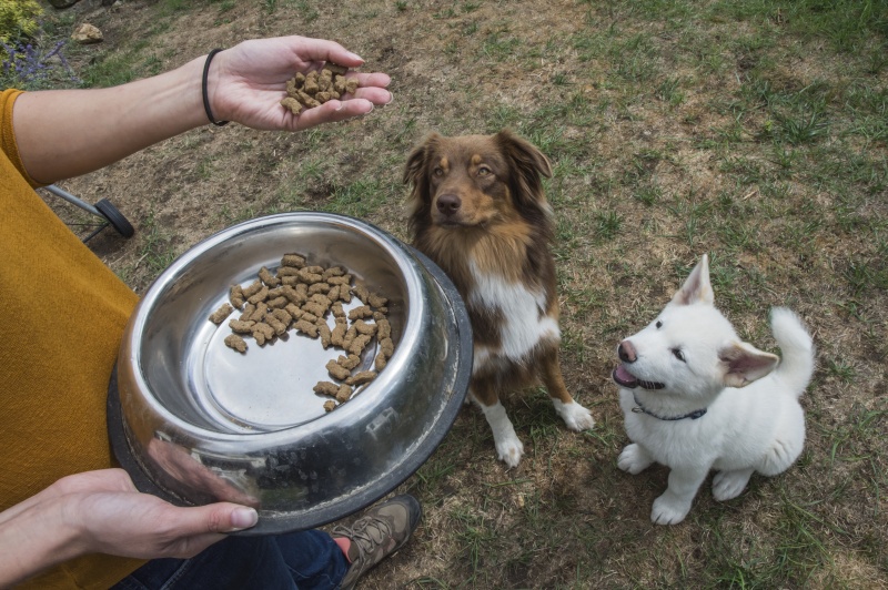 Partager les ressources, cela s'apprend dès le plus jeune âge pour éviter les bagarres autour de la gamelle. A. BeinatRéhabiliter l'image du chien
