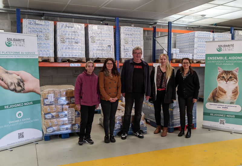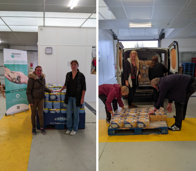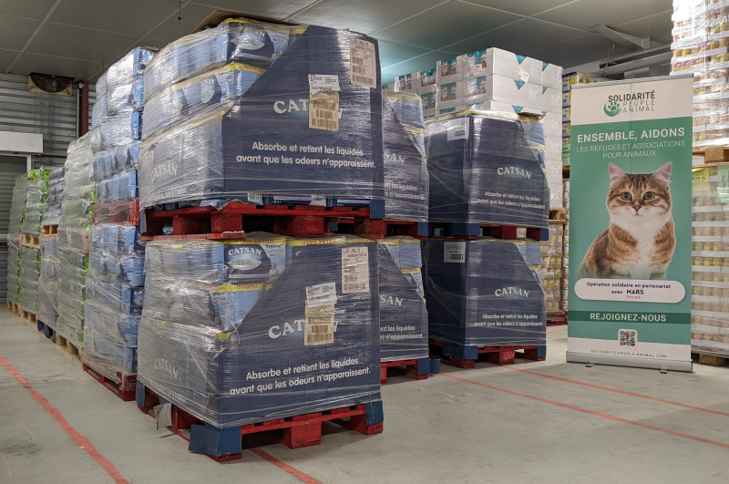 En octobre, dans la ville de Saint-Malo en Ille-et-Vilaine (35), 12 tonnes de litière Catsan de la société Mars Petcare ont pu être chargées dans les véhicules d’associations de protection animale. L’opération organisée par Solidarité-Peuple-Animal, a pu être réalisée avec l’aide de la mairie de Saint-Malo qui a mis à disposition un endroit de stockage et de distribution. « C’est une très belle action et nous sommes très contents qu’elle se soit déroulée dans notre ville, se réjouit Céline Roche, adjointe au maire de Saint-Malo et partenaire de cette opération solidaire. Nous voulons féliciter le travail de Solidarité-Peuple-Animal qui apporte une aide colossale aux associations et leurs grosses difficultés au quotidien. Ce type d’opération contribue grandement à la chaîne de solidarité sur le bien-être et la condition animale. »