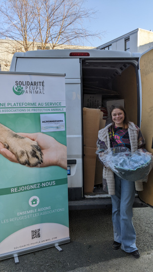 « Le jour de livraison, des bénévoles sont venus aider à déballer le contenu des palettes et ont accompli un immense travail de manutention. Grâce à leur bonne humeur et leur enthousiasme nous n’avons pas senti les -3°C durant ces 2 jours ! » souligne par ailleurs Agnès Souchal, chargée de missions pour Solidarité-Peuple-Animal, à la tête de l’organisation de l’ensemble des opérations organisées par notre plateforme.