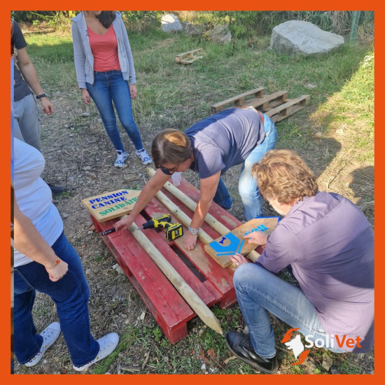 Début octobre, Solivet a notamment travaillé à la création de niches avec les équipes de Boehringer, pour son projet de pension canine solidaire ©Solivet