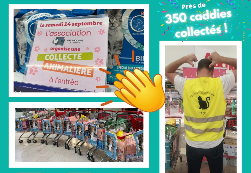 Le samedi 14 septembre 2024, 55 refuges et associations à travers toute la France ont pu participer à une opération de collecte dans un magasin Auchan, organisée par Solidarité-Peuple-Animal en partenariat avec Purina France. L’objectif : permettre aux structures de se réapprovisionner en nourriture, litière et produits d’hygiène pour prendre soin des animaux abandonnés et maltraités. En effet, les associations accueillent tout au long de l’année un nombre croissant d’animaux, avec très peu ou aucune aide des collectivités. « Les besoins sont tellement énormes, souligne ainsi Nadine, présidente de l’association Apegal, qui s’occupe des chats libres dans le Pas-de-Calais (62). Maintenant, nous sommes obligés d’acheter les boîtes de nourriture par palettes. »
