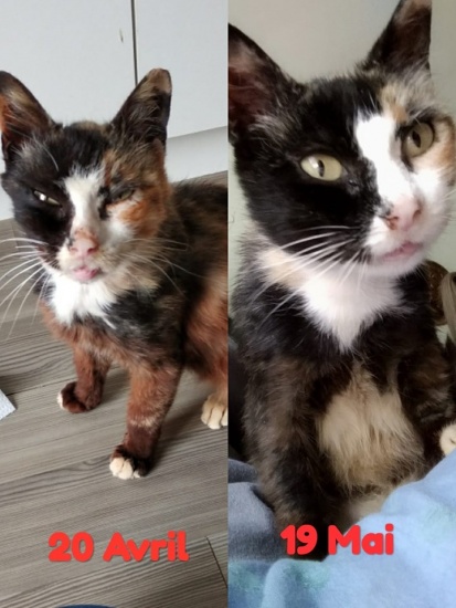 Oria avant... et après © Les chats du 65Et Dieu sait qu’il en faut, des bénévoles… Patrick ne le cache pas : « On est obligés de refuser des prises en charge, car on n’a pas de place. Alors, notre premier besoin, ce sont des familles d’accueil ».
