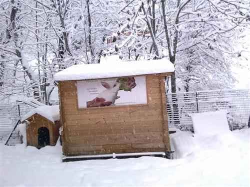 Le refuge est situé à Saint-Etienne-de-Tinée, tout près des stations de ski, à une altitude de presque 1200 mètres (un peu plus bas que le village). C'est dire si la neige est arrivée ! Plusieurs jolis petits chalets en bois ont déjà été construits pour les abriter, mais Julie en profite pour rappeler qu'ils ont aussi besoin de main d'oeuvre généreuse : "Il nous faudrait quelques hommes pour agrandir l'enclos. En raison de la présence du loup, notamment, il est important que la clôture soit fiable et de bonne qualité.