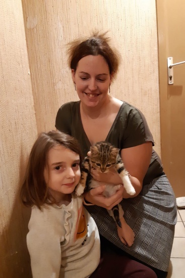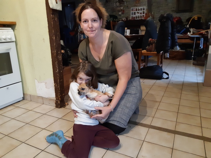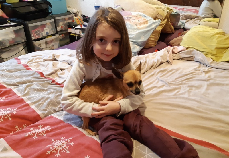 Nous avons connu l’association « 4 pattes sans toit » parce que ma belle-mère y a adopté un animal. Ensuite, nous avons adopté deux chiens, un patou croisé border collie et un husky, et pris en famille d’accueil un berger australien que finalement nous avons gardé. Actuellement, à la maison, nous avons ces 3 chiens qui sont les nôtres, et nos 2 chats Mimine et Pop Queen. En plus, dans le cadre de la famille d’accueil, nous avons 4 animaux : Flora, une chihuahua, Gamin, un chat noir, Caramel, un chaton de 3 mois qui est actuellement en quarantaine dans la salle de bains parce qu’il a la teigne, et sa mère, Princesse.
