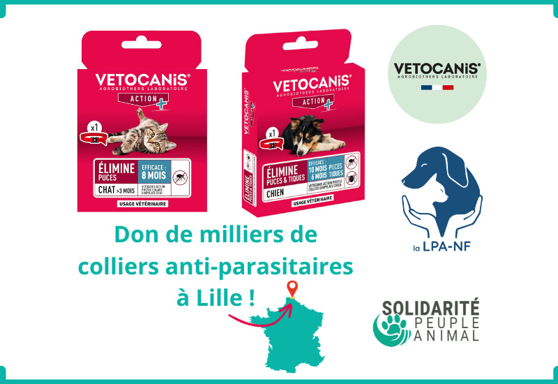 La Ligue Protectrice des Animaux du Nord de la France (LPA-NF), organisme reconnu d'utilité publique, a reçu un don de 29 000 colliers anti-parasitaires principalement pour chats mais aussi pour chiens de la marque Vétocanis!