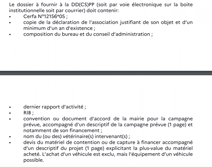 2°) Le financement de campagnes de stérilisation de chats ou de chiens (matériels de contention, frais vétérinaires) est au bénéfice des associations conduisant ces campagnes et bénéficiant de l’accord des maires. Il est précisé que « les dépenses éligibles relatives aux campagnes de stérilisation sont les honoraires des vétérinaires ayant pratiqué les actes de chirurgie. Ces financements seront versés directement aux vétérinaires sur présentation des factures correspondantes, à hauteur de 50% des dépenses. »